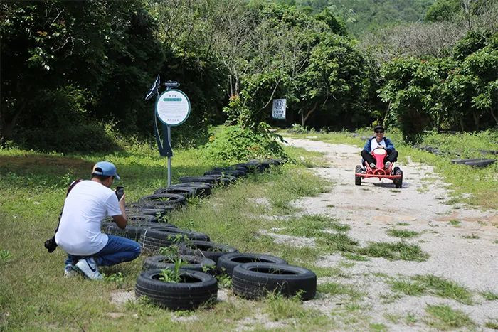 园内潺潺流水,鸟语花香。吃完午饭,达人们有的开卡丁车一解午后的困乏,有的坐在水榭亭中品茗,感慨这里是很好的休闲胜地。达人“咱厝人-陈陈”每走完一个景点,就迫不及待发微博与读者分享。