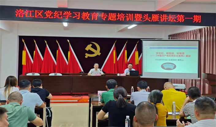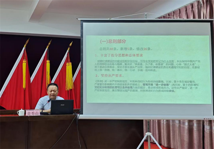专题辅导邀请区委党校副校长黄秀山同志作《中国共产党纪律处分条例》解读授课,黄副校长从《条例》的历史沿革、新修订的主要内容、如何抓好贯彻执行等多个层面,系统阐述《条例》的丰富内涵,特别是针对一些基层关注度高的问题进行精准具体、通俗易懂的解读,为参训人员上了一堂生动的专题辅导课,既有理论深度,又有实践指导意义。