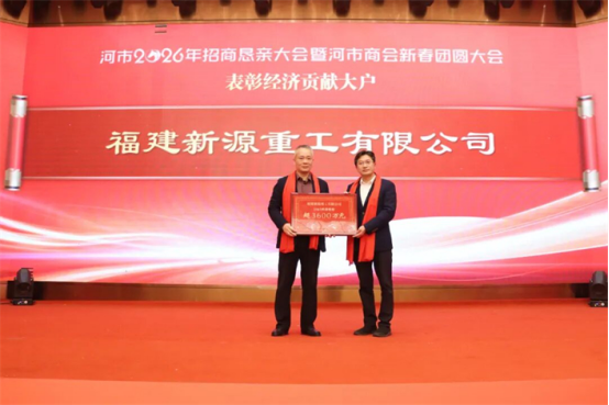 徐情根为福建新源重工有限公司颁发2025年度税收超3600万元牌匾