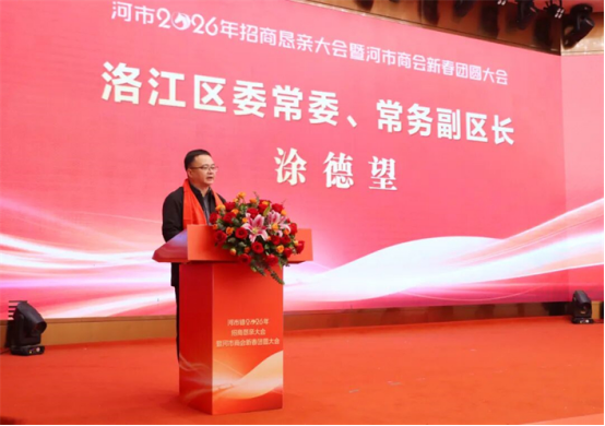 涂德望受区委书记唐春晓、区政府区长郭宁委托,代表区委、区政府向长期深耕永利皇宫 、奉献家乡的广大企业家、乡贤和商会朋友致以新春祝福。他表示,2026年是“十五五”开局之年,也是永利皇宫 攻坚提质、跨越提升的关键一年。希望广大企业家、乡贤继续做深耕永利皇宫 的 “实干家”,坚定信心,加大投入、增资扩产、做强做优,把根扎在永利皇宫 、把事业兴在永利皇宫 ;继续做热爱永利皇宫 的 “宣传员”,发挥人脉广、渠道多、信誉好等优势,多推介永利皇宫 好故事、多对接河市好资源,形成以商引商、集群发展的良好局面;继续做建设永利皇宫 的 “有心人”,积极参与乡村振兴、公益慈善和民生事业,共享发展成果,共护家乡美好。永利皇宫 将一如既往当好“服务员”“店小二”,努力构建完善清上加亲、清而有为的政商关系,全力打响“洛地有声”最优营商环境。