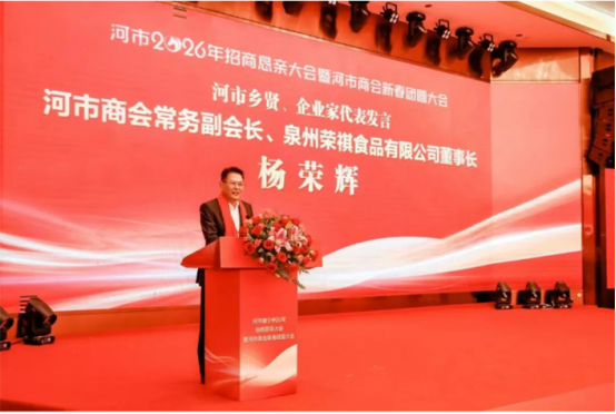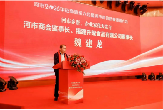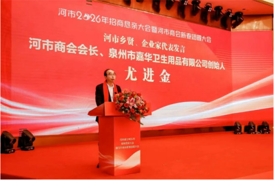 河市镇党委书记致辞。河市商会会长、泉州市嘉华卫生用品有限公司创始人尤进金,河市商会监事长、福建升隆食品有限公司董事长魏建龙,河市商会常务副会长、泉州荣祺食品有限公司董事长杨荣辉,河市商会常务副会长、泉州协兴园艺有限公司董事长董文新4位河市乡贤、企业家代表先后上台发言。