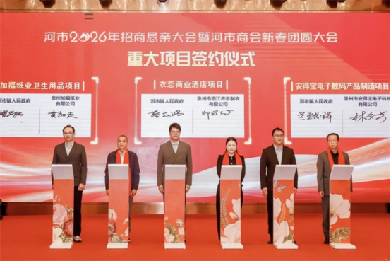 3月1日,河市镇召开2026年新春招商恳亲大会,200余名企业家、乡贤、商会代表齐聚一堂,共话桑梓情谊、共襄发展盛举。