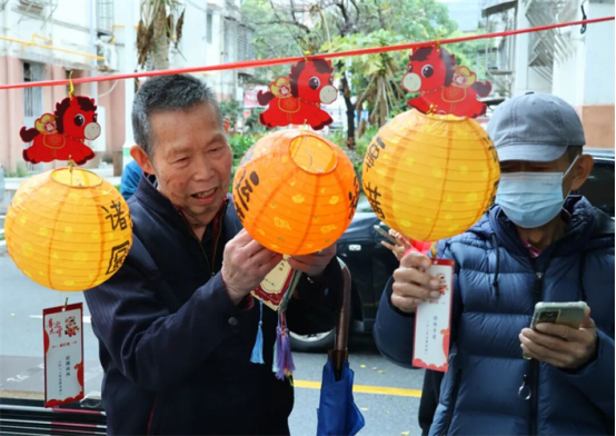 与此同时,庆春节游元宵系列小游戏吸引了众多居民参与。“套圈”“盲人敲锣”“夹珠子”“吹乒乓球”等趣味项目前排起长队,男女老少齐上阵,现场其乐融融。