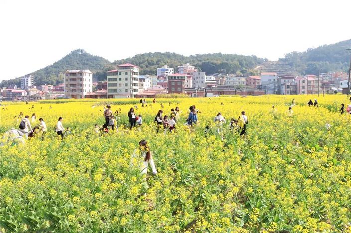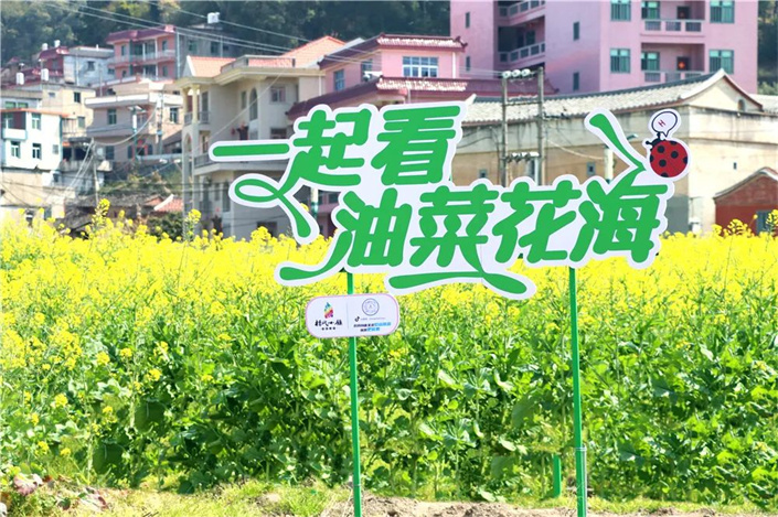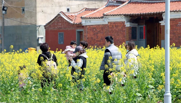 金色花海间,不少市民、游客结伴而行,远离城市的喧嚣,踏上油菜花田的小道,花田中设置浪漫路牌、田野打卡相框等多种特色打卡地,将赏花游融入围炉煮茶、露营,玩乐的同时品尝美食,打造一场春日轻松、浪漫之旅,“圈粉”更多年轻市民、亲子家庭前来游览。