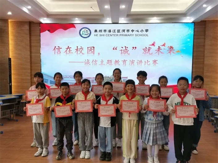 “诚”之造字,左言语,右做成,诚信之力不仅体现于不声不语的行为,同时也展现在妙语连珠中,以妙语传递真挚与担当。为此,学校组织四五年级的学生进行了一场诚信主题演讲比赛,让诚信理念根植于青少年心中。选手们通过身边的鲜活事例阐明诚信对当代学生的深远影响与价值,对构建文明和谐校园的重要性,激励和鞭策身边同学诚实守信,做诚信人,展现了学生积极向上的精神风貌。